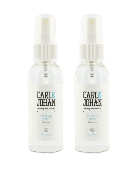 Le spray pour piercing Carl & Johan assure un nettoyage en profondeur et antibactérien, ne pique pas, est agréable à utiliser, sans silicone ni parabènes, vegan et convient à tous les types de peau.